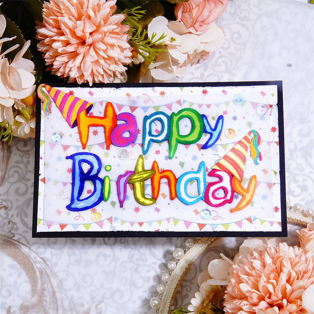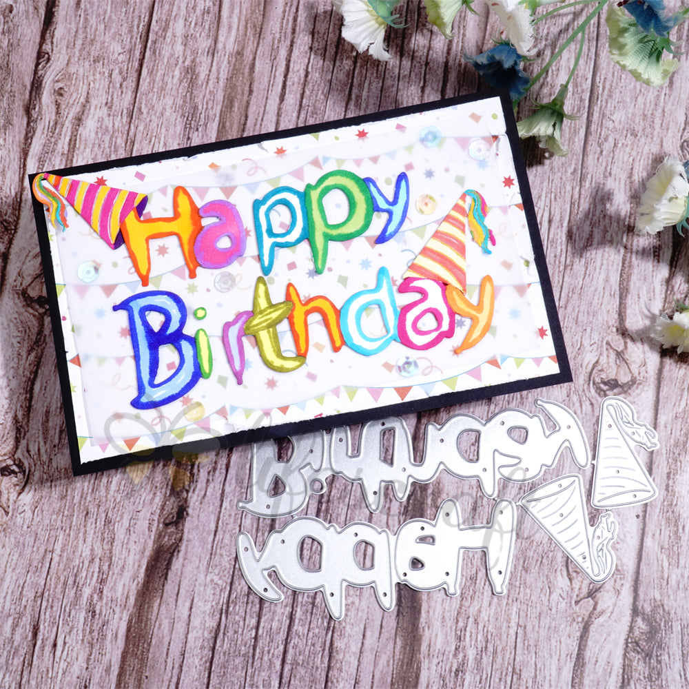 Lifescraft Happy Birthday Word and Birthday Hat Metal Cutting Dies