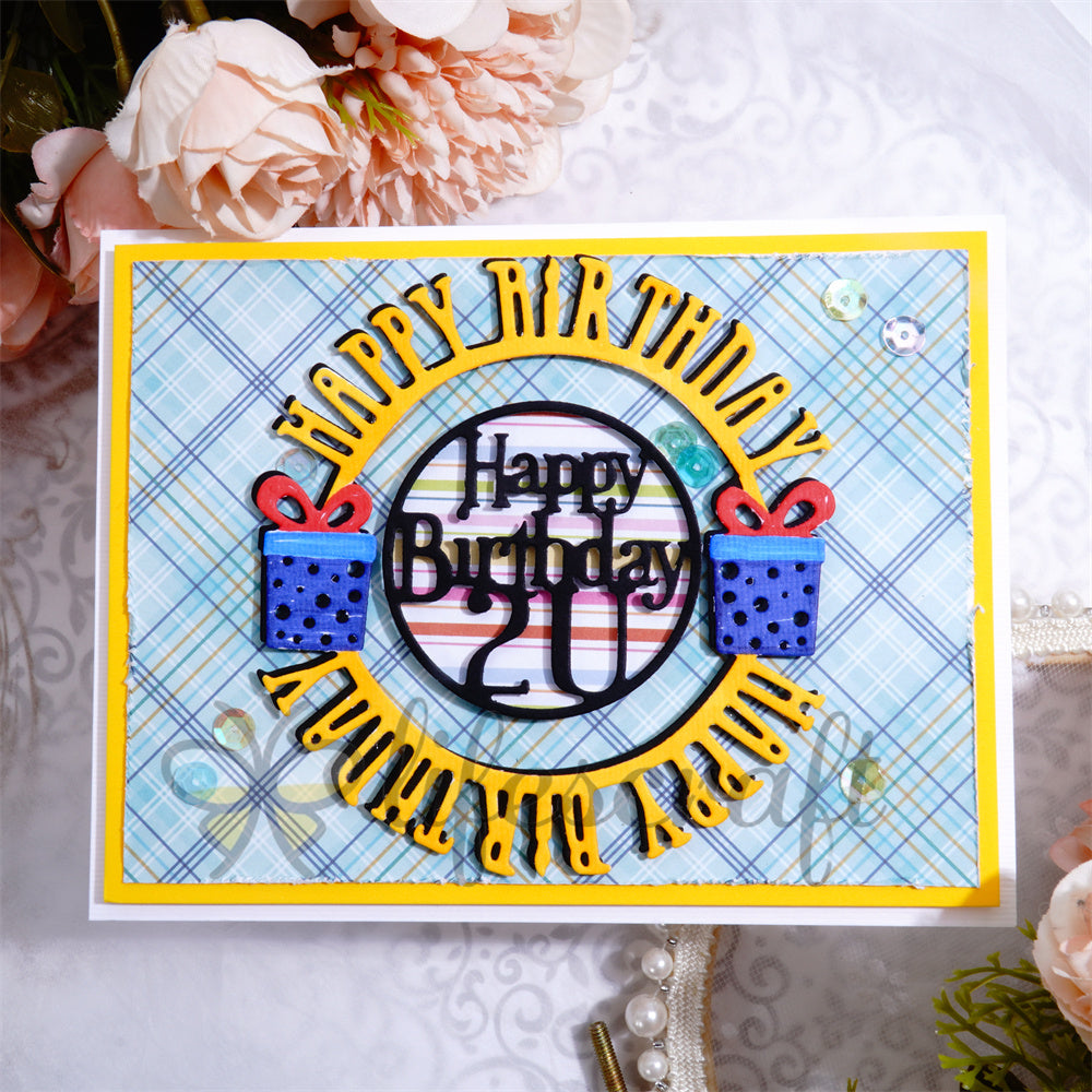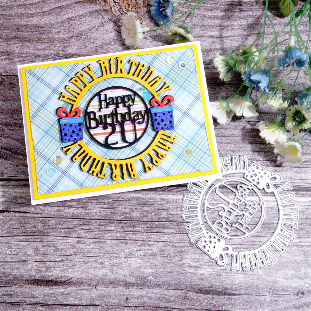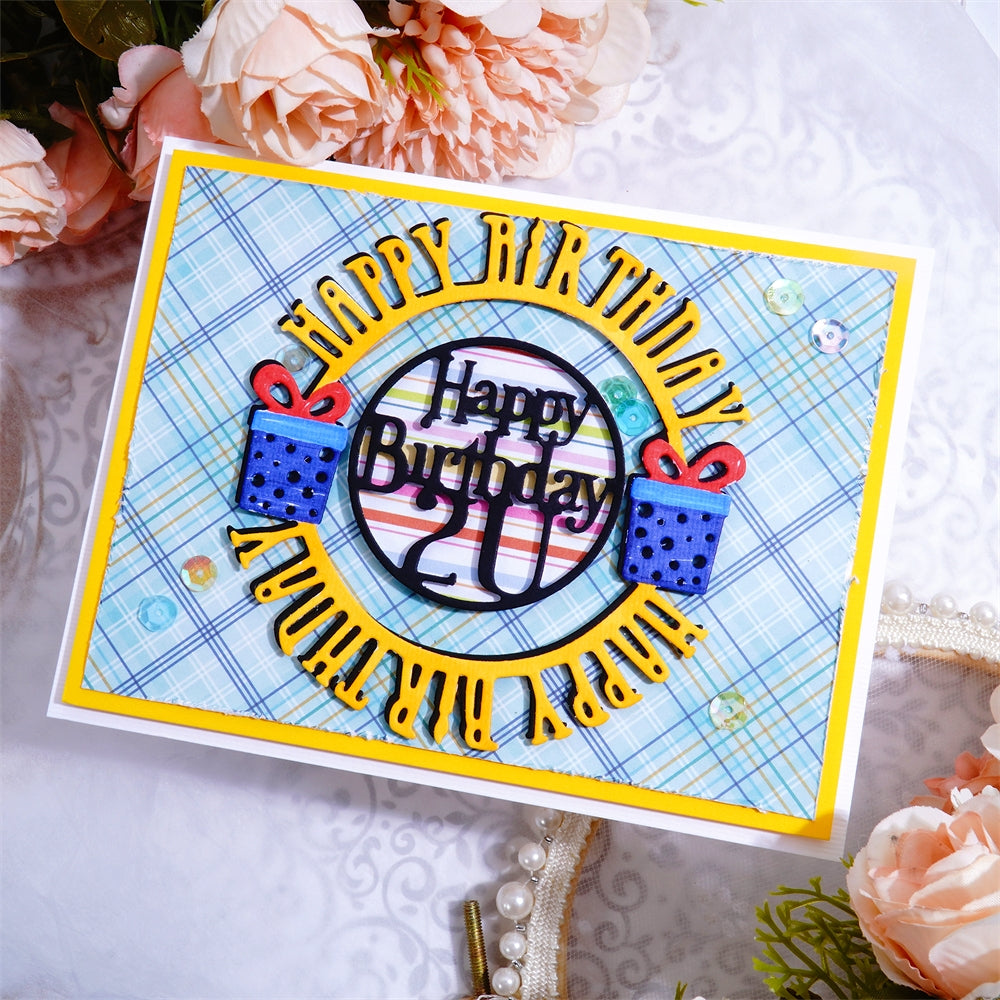 Lifescraft HAPPY BIRTHDAY Word Round Frame and Gift Box Metal Cutting Dies-lifescraftart
