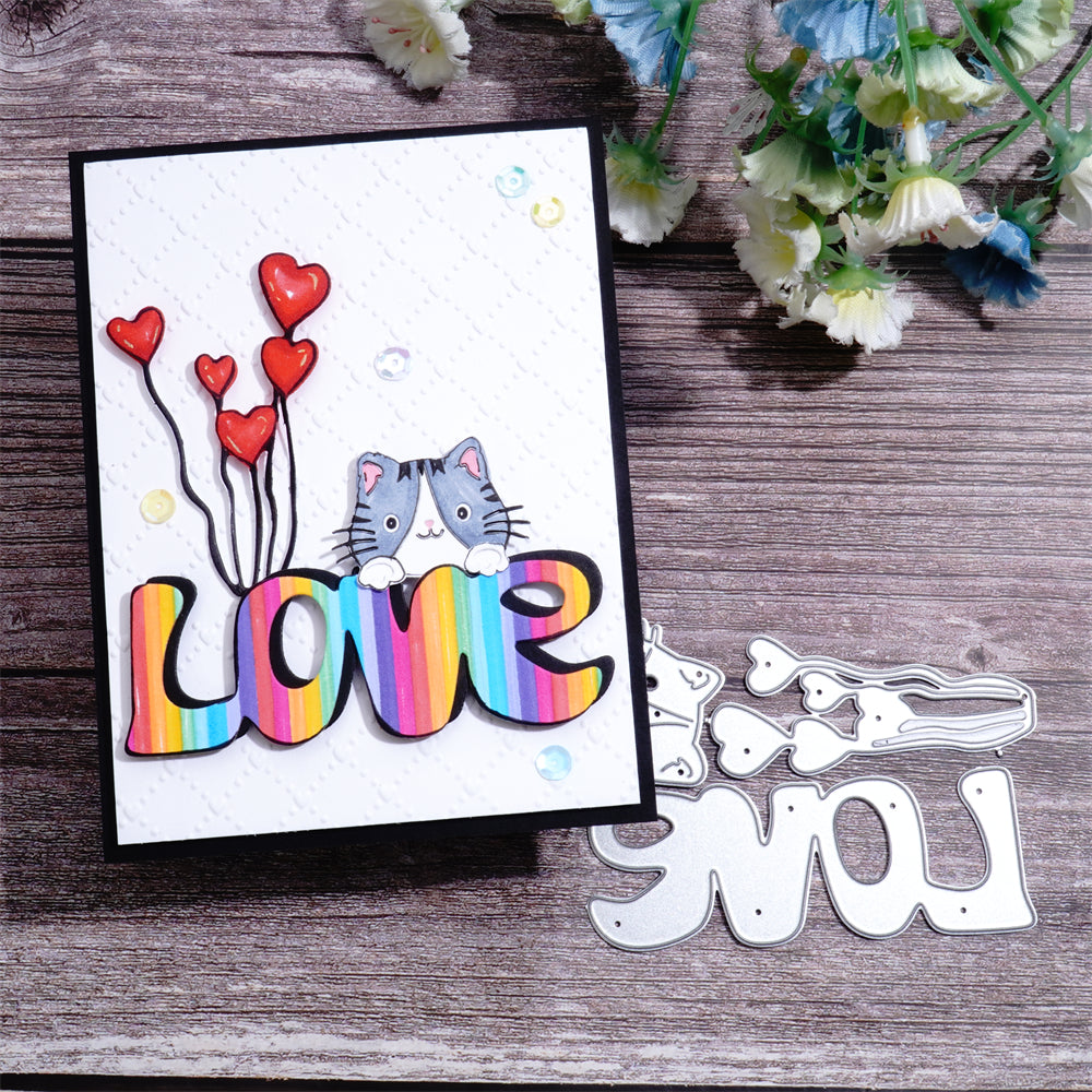 Lifescraft Love Word Balloon& Cat Metal Cutting Dies-lifescraftart