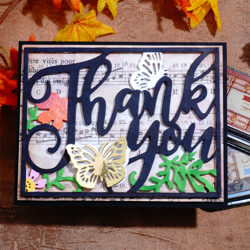 Lifescraft Thank You Word & Butterfly Frame Boder Metal Cutting Dies